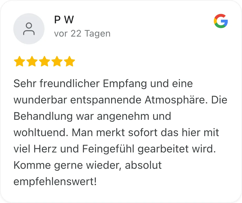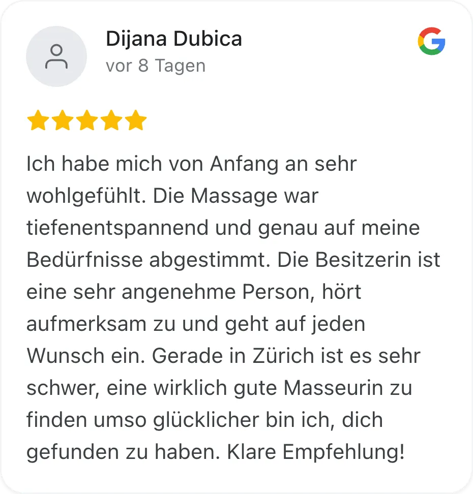 Die Massage kann ganz individuell angepasst werden, je nachdem, wo du Verspannungen oder Schmerzen hast – für eine Behandlung, die genau zu dir passt.